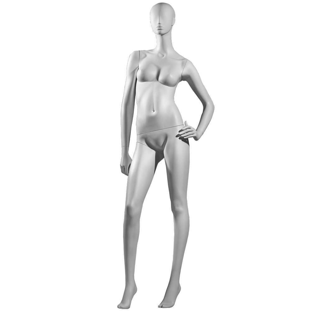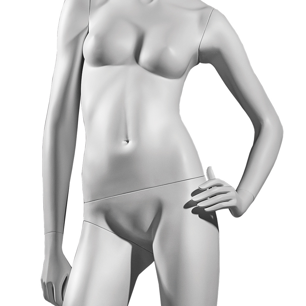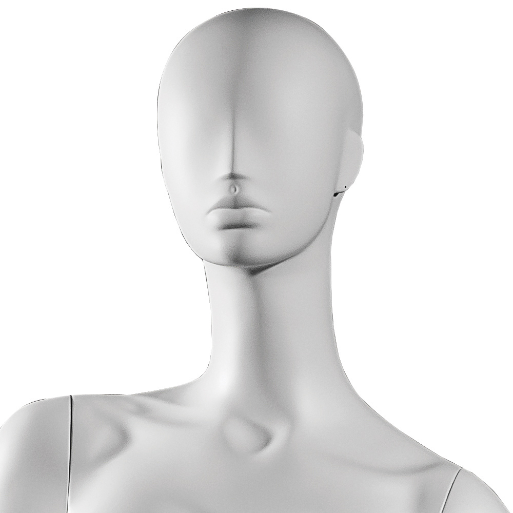 Κούκλα βιτρίνας άμορφη της σειράς Ophelia σε όρθια στάση, με αριστερό χέρι λύγισμένο στο ύψος του γοφού και δεξί κάτω, το δεξί πόδι ελαφρώς λυγισμένο και πατούσες στις μύτες. Το κεφάλι είναι αφαιρετικό - στυλιζαρισμένο (χωρίς πολλά χαρακτηριστικά προσώπου) και κοιτάει ευθεία. Είναι κατασκευασμένη από Fiberglass (λεπτές ίνες γυαλιού) ένα υλικό με μεγάλη αντοχή και μικρό βάρος.