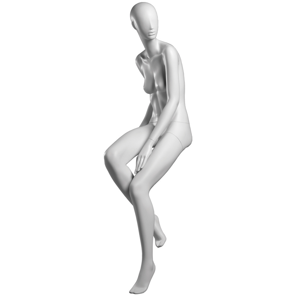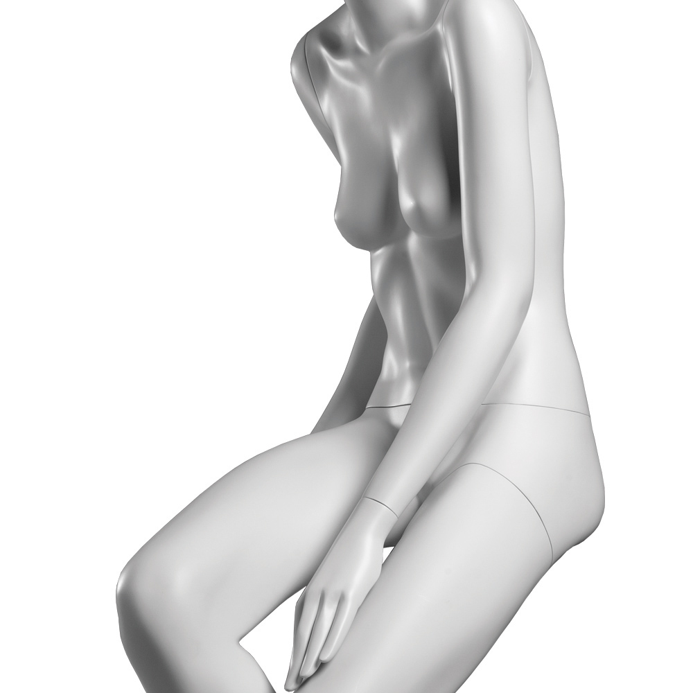Κούκλα βιτρίνας άμορφη της σειράς Ophelia σε καθιστή στάση με τα χέρια κάτω, πόδια λυγισμένα, δεξί πόδι πιό πάνω από το αριστερό και πατούσες point. Το κεφάλι είναι αφαιρετικό - στυλιζαρισμένο (χωρίς πολλά χαρακτηριστικά προσώπου) και κοιτάζει αριστερά. Είναι κατασκευασμένη από Fiberglass (λεπτές ίνες γυαλιού) ένα υλικό με μεγάλη αντοχή και μικρό βάρος.