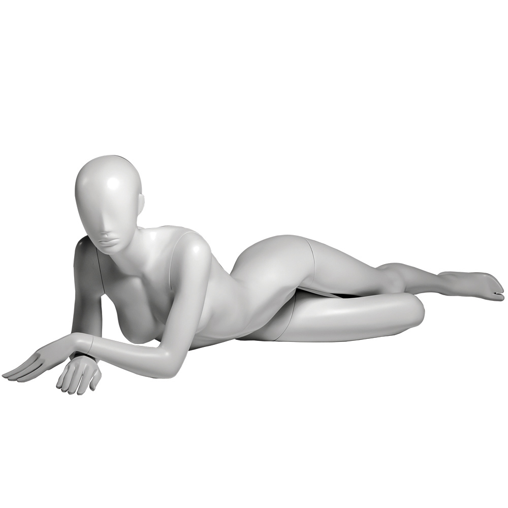 Κούκλα βιτρίνας άμορφη της σειράς Ophelia σε ξαπλωτή στάση με τα χέρια σταυρωτά μπροστά, πόδια λυγισμένα πίσω. Το κεφάλι είναι αφαιρετικό - στυλιζαρισμένο (χωρίς πολλά χαρακτηριστικά προσώπου) και κοιτάζει ευθεία. Είναι κατασκευασμένη από Fiberglass (λεπτές ίνες γυαλιού) ένα υλικό με μεγάλη αντοχή και μικρό βάρος.