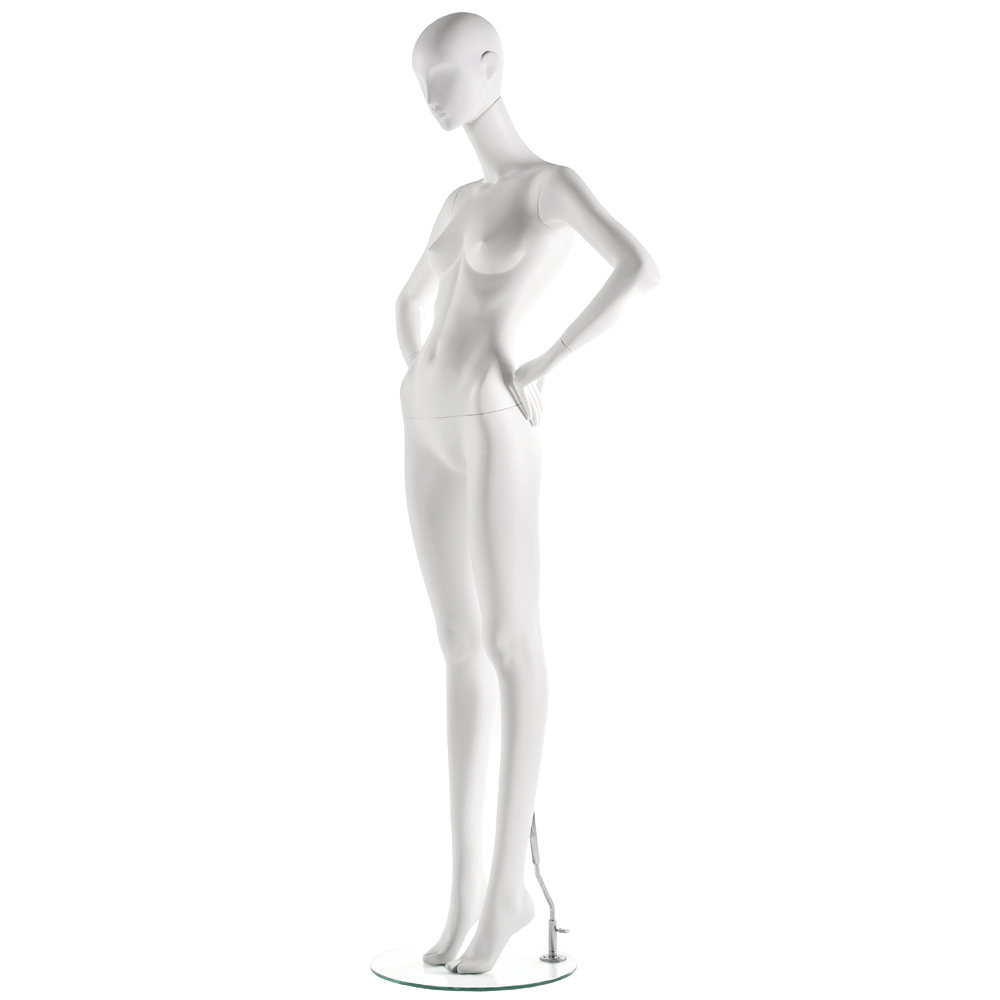Κούκλα βιτρίνας άμορφη της σειράς Juno σε όρθια στάση με τα χέρια στη μέση, πόδια ίσια με πατούσες στις μύτες. Το κεφάλι είναι αφαιρετικό - στυλιζαρισμένο (χωρίς πολλά χαρακτηριστικά προσώπου) με μικρή κλίση μπροστά και κοιτάζει ευθεία. Οι λεπτομέριες στα δάχτυλα χεριών και ποδίών είναι στυλιζαρισμένες. Είναι κατασκευασμένη από Bioresin (οικολογικό υλικό που προέρχεται από οργανικές πρώτες ύλες).