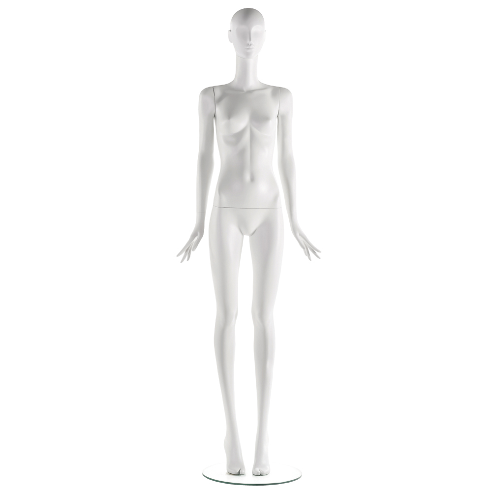 Κούκλα βιτρίνας άμορφη της σειράς Juno σε όρθια στάση με τα χέρια κάτω και τα δάχτυλα προς τα έξω, πόδια ίσια με πατούσες στις μύτες. Το κεφάλι είναι αφαιρετικό - στυλιζαρισμένο (χωρίς πολλά χαρακτηριστικά προσώπου) με μικρή κλίση μπροστά και κοιτάζει ευθεία. Οι λεπτομέριες στα δάχτυλα χεριών και ποδίών είναι στυλιζαρισμένες. Είναι κατασκευασμένη από Bioresin (οικολογικό υλικό που προέρχεται από οργανικές πρώτες ύλες).