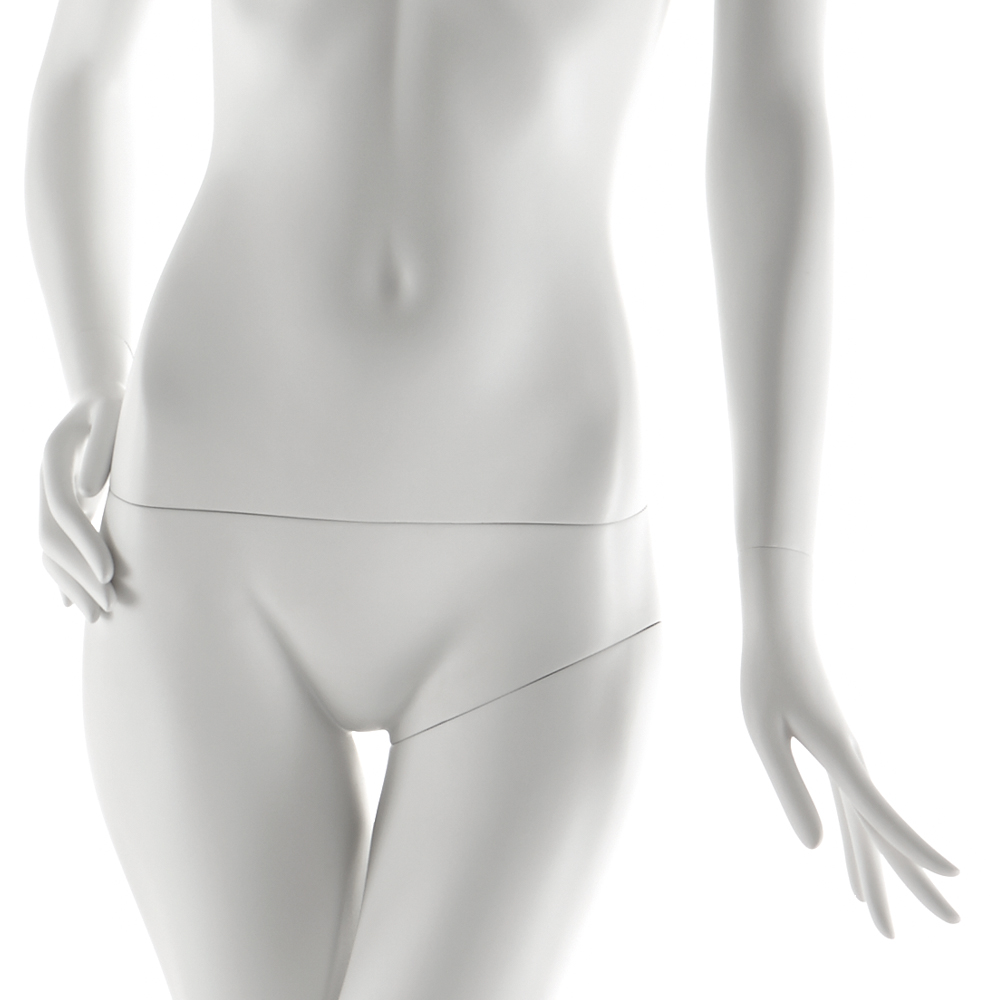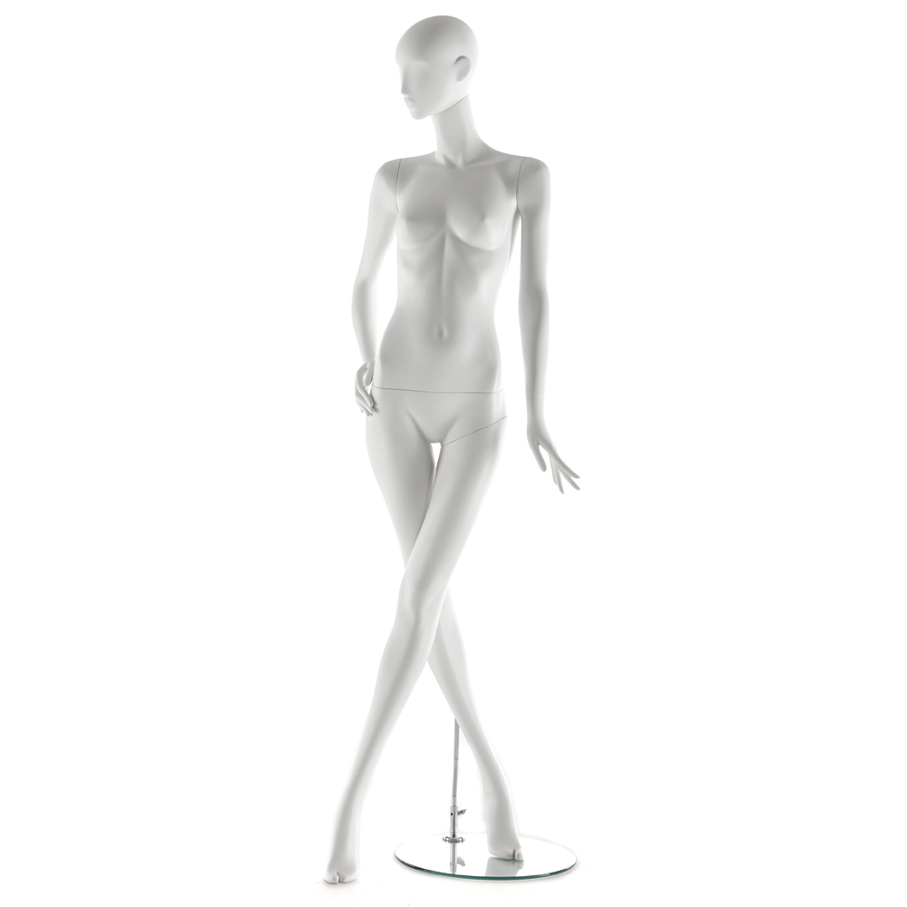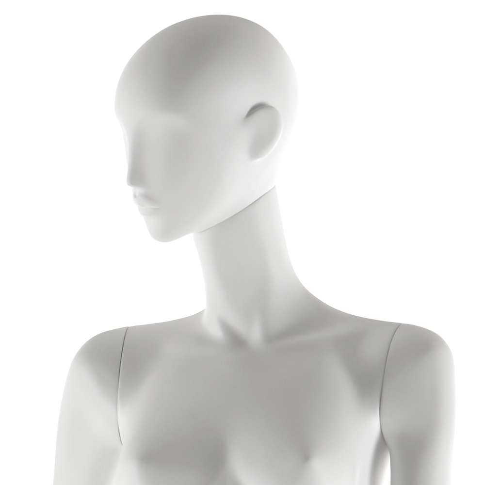 Κούκλα βιτρίνας άμορφη της σειράς Juno σε όρθια στάση με το δεξί χέρι να ακουμπάει το δεξί γοφό και το αριστερό κάτω με τα δάχτυλα προς τα έξω, πόδια σταυρωτά με αριστερό μπροστά από το δεξί και πατούσες στις μύτες. Το κεφάλι είναι αφαιρετικό - στυλιζαρισμένο (χωρίς πολλά χαρακτηριστικά προσώπου) με μικρή κλίση μπροστά και κοιτάζει ελαφρώς δεξιά. Οι λεπτομέριες στα δάχτυλα χεριών και ποδίών είναι στυλιζαρισμένες. Είναι κατασκευασμένη από Bioresin (οικολογικό υλικό που προέρχεται από οργανικές πρώτες ύλες).