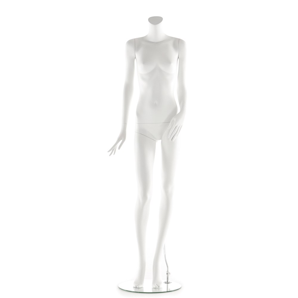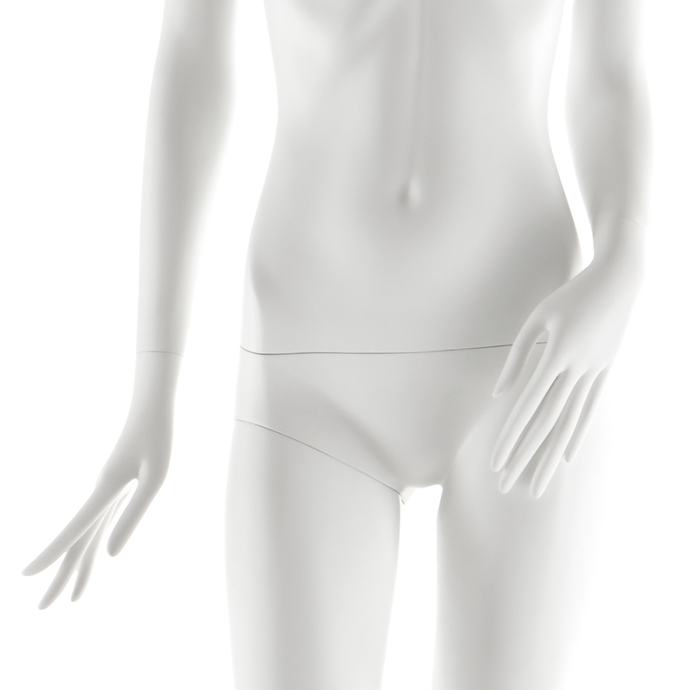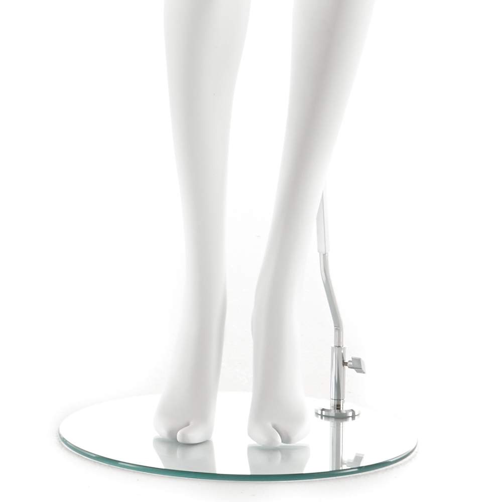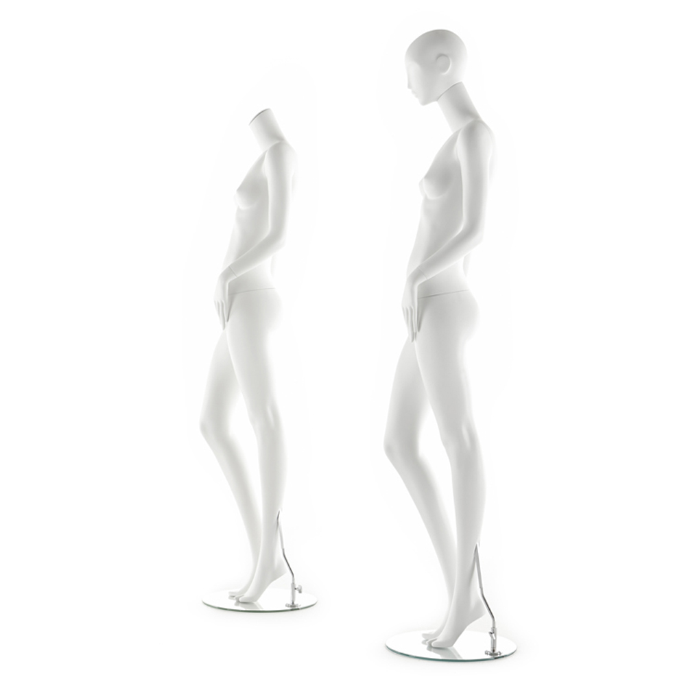 Κούκλα βιτρίνας άμορφη της σειράς Juno σε όρθια στάση με το δεξί χέρι κάτω με τα δάχτυλα προς τα έξω και το αριστερό μπροστά απο τη μέση, πόδια ίσια και πατούσες στις μύτες. Το κεφάλι είναι αφαιρετικό - στυλιζαρισμένο (χωρίς πολλά χαρακτηριστικά προσώπου) με μικρή κλίση μπροστά και κοιτάζει ευθεία. Οι λεπτομέριες στα δάχτυλα χεριών και ποδίών είναι στυλιζαρισμένες. Είναι κατασκευασμένη από Bioresin (οικολογικό υλικό που προέρχεται από οργανικές πρώτες ύλες).