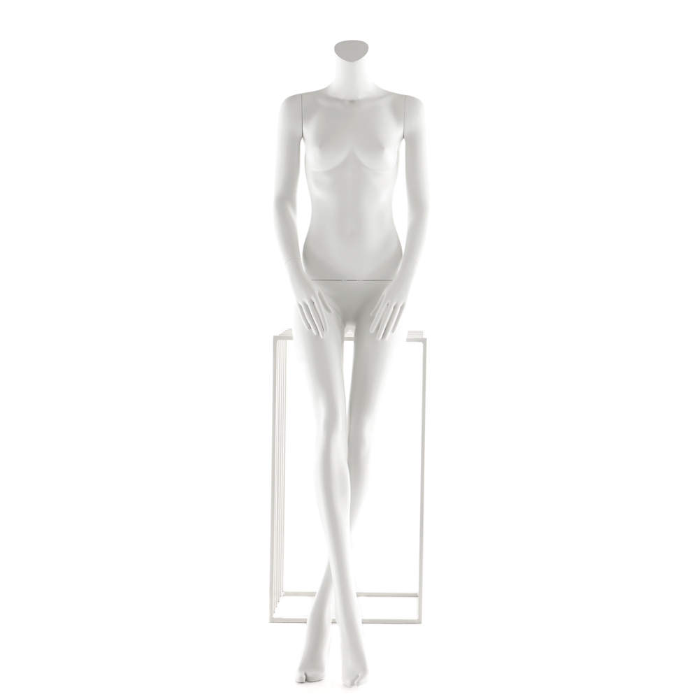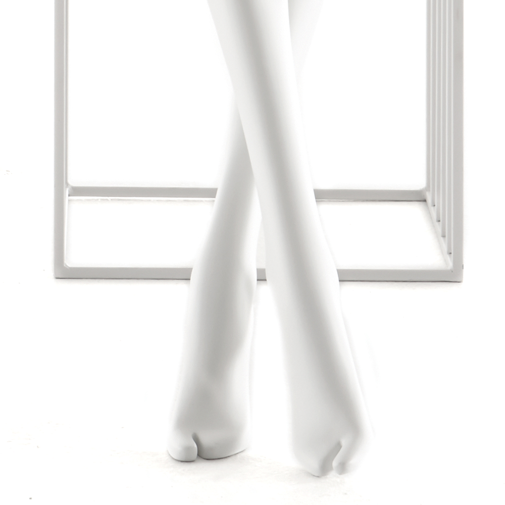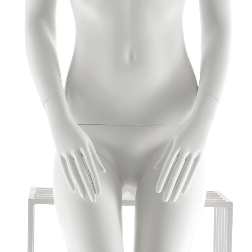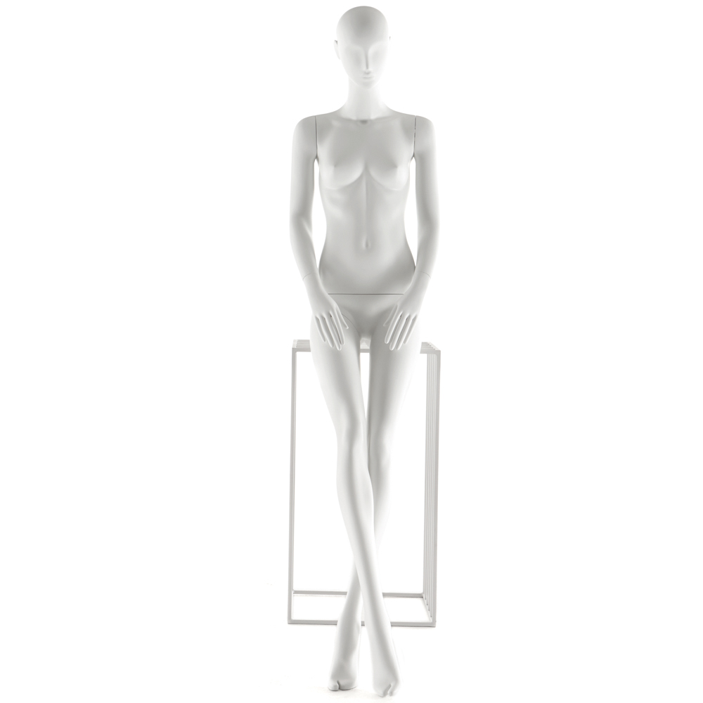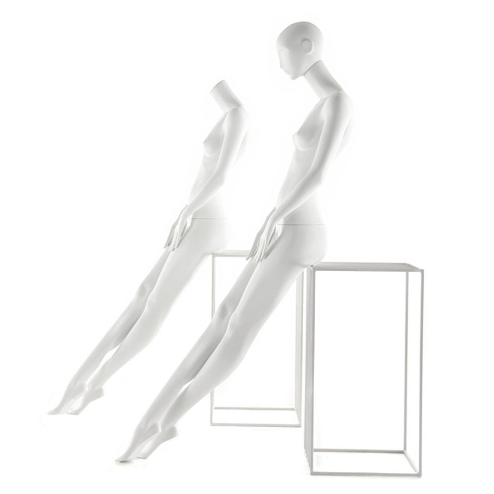 Κούκλα βιτρίνας άμορφη της σειράς Juno σε καθιστή στάση με τα χέρια πάνω από τους μηρούς, πόδια ίσια και πατούσες στις μύτες. Το κεφάλι είναι αφαιρετικό - στυλιζαρισμένο (χωρίς πολλά χαρακτηριστικά προσώπου) με μικρή κλίση μπροστά και κοιτάζει ευθεία. Οι λεπτομέριες στα δάχτυλα χεριών και ποδίών είναι στυλιζαρισμένες. Είναι κατασκευασμένη από Bioresin (οικολογικό υλικό που προέρχεται από οργανικές πρώτες ύλες).