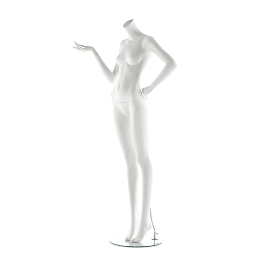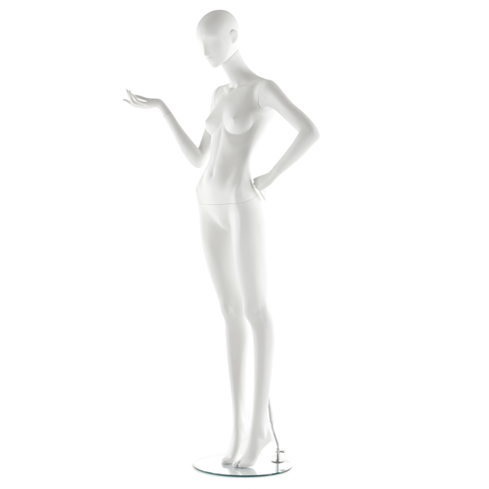 Κούκλα βιτρίνας άμορφη της σειράς Juno σε όρθια στάση με το αριστερό χέρι στη μέση και το δεξί αγκώνα λυγισμένο, πόδια ίσια και πατούσες στις μύτες. Το κεφάλι είναι αφαιρετικό - στυλιζαρισμένο (χωρίς πολλά χαρακτηριστικά προσώπου) με μικρή κλίση μπροστά και κοιτάζει ευθεία. Οι λεπτομέριες στα δάχτυλα χεριών και ποδίών είναι στυλιζαρισμένες. Είναι κατασκευασμένη από Bioresin (οικολογικό υλικό που προέρχεται από οργανικές πρώτες ύλες).