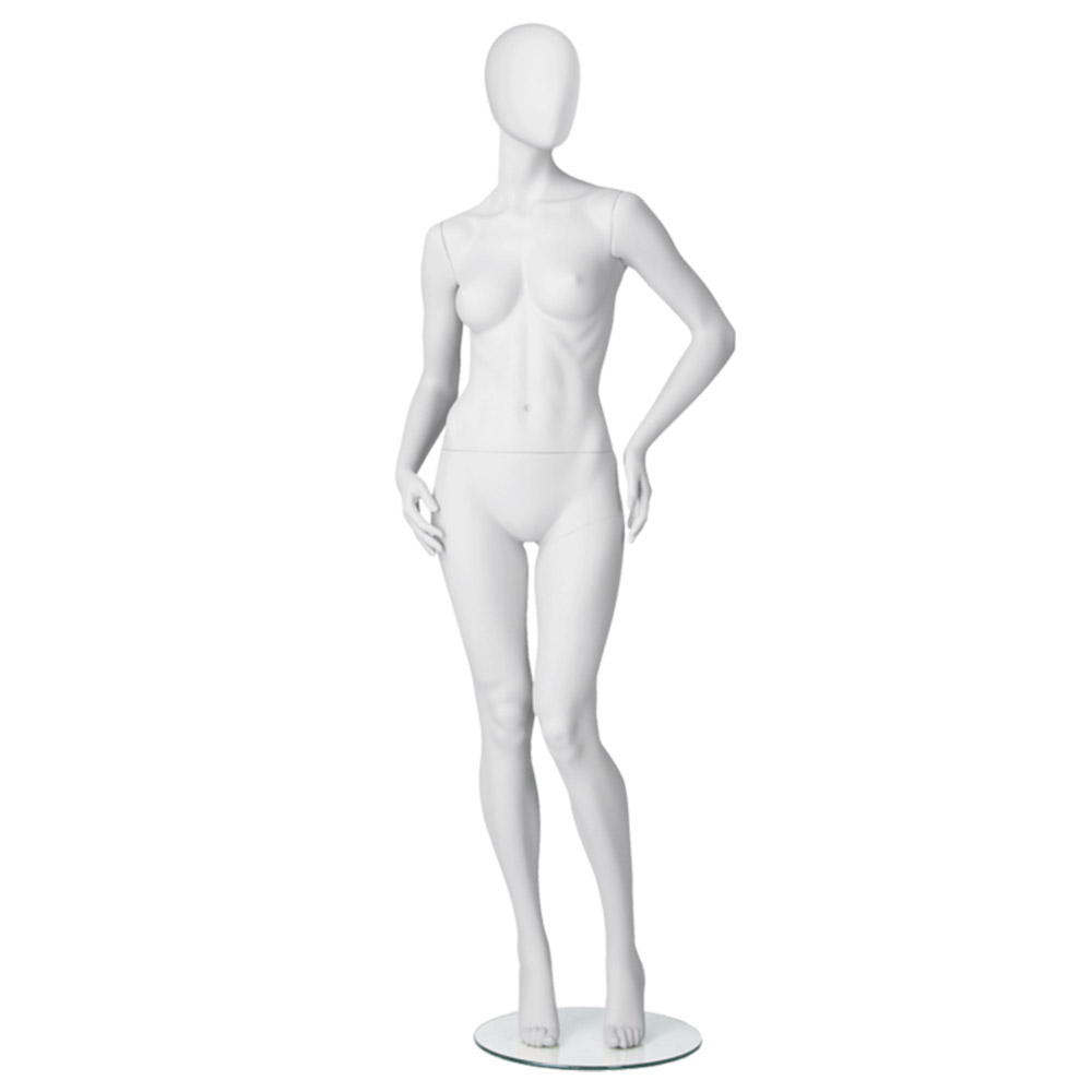 Κούκλα βιτρίνας της σειράς Uptown Girls Abstract Collection σε ίσια όρθια στάση. To κεφάλι είναι αυγοειδές (χωρίς καθόλου χαρακτηριστικά προσώπου) και κοιτάει αριστερά, τα χέρια με λυγισμένους αγκώνες, αριστερό γόνατο ελαφρώς λυγισμένο και πατούσες στις μύτες. Δάχτυλα χεριών και ποδιών είναι ρεαλιστικά. Είναι κατασκευασμένη από Fiberglass (λεπτές ίνες γυαλιού) ένα υλικό με μεγάλη αντοχή και μικρό βάρος.