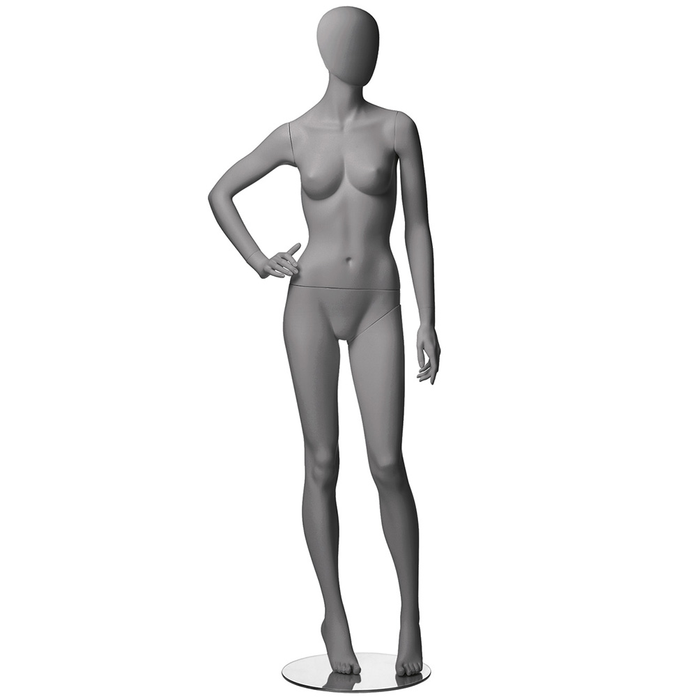 Κούκλα βιτρίνας της σειράς Metro Dame σε ίσια όρθια στάση. To κεφάλι είναι αυγοειδές (χωρίς καθόλου χαρακτηριστικά προσώπου) και κοιτάει αριστερά, δεξί χέρι στη μέση και αριστερό κάτω, πατούσες στις μύτες. Δάχτυλα χεριών και ποδιών είναι ρεαλιστικά. Είναι κατασκευασμένη από Fiberglass (λεπτές ίνες γυαλιού) ένα υλικό με μεγάλη αντοχή και μικρό βάρος.