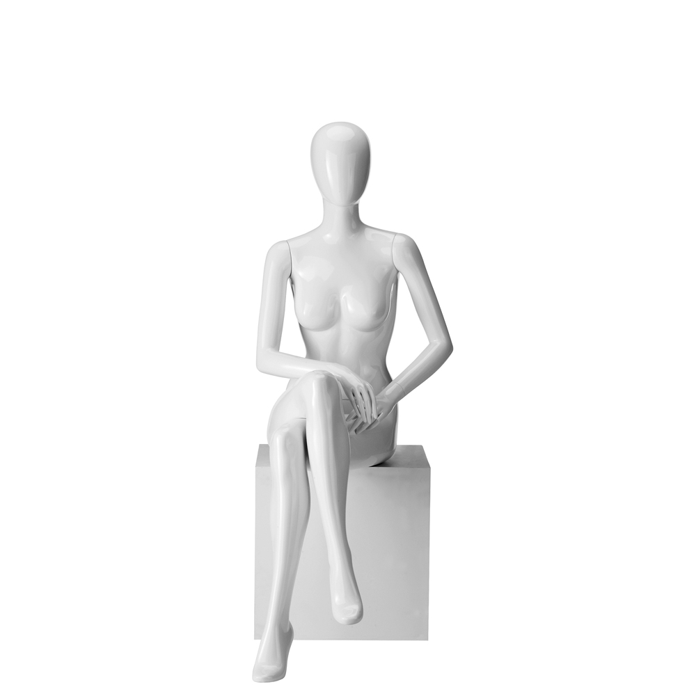 Κούκλα βιτρίνας της σειράς Ringo Dame σε καθιστή στάση. To κεφάλι είναι αυγοειδές (χωρίς καθόλου χαρακτηριστικά προσώπου) και κοιτάει ευθεία, δεξί χέρι στο δεξίό μηρό και αριστερό ακουμπάει στον αριστερό μηρό, δεξί πόδι πάνω από το αριστερό (σταυροπόδι), πατούσες στις μύτες με αφαιρερικά δάχτυλα. Είναι κατασκευασμένη από Fiberglass (λεπτές ίνες γυαλιού) ένα υλικό με μεγάλη αντοχή και μικρό βάρος.