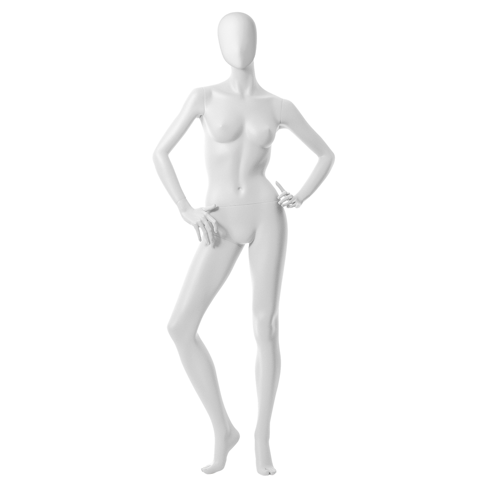 Κούκλα βιτρίνας της σειράς London Babes Abstract Collection σε ίσια όρθια στάση. To κεφάλι είναι αφαιρετικό αυγοειδές (χωρίς καθόλου χαρακτηριστικά προσώπου) και κοιτάει ευθεία, τα χέρια στη μέση με λυγισμένα δάχτυλα, δεξί πόδι ελαφρώς λυγισμένο και πατούσες στις μύτες. Δάχτυλα χεριών και ποδιών είναι ρεαλιστικά. Είναι κατασκευασμένη από Fiberglass (λεπτές ίνες γυαλιού) ένα υλικό με μεγάλη αντοχή και μικρό βάρος.