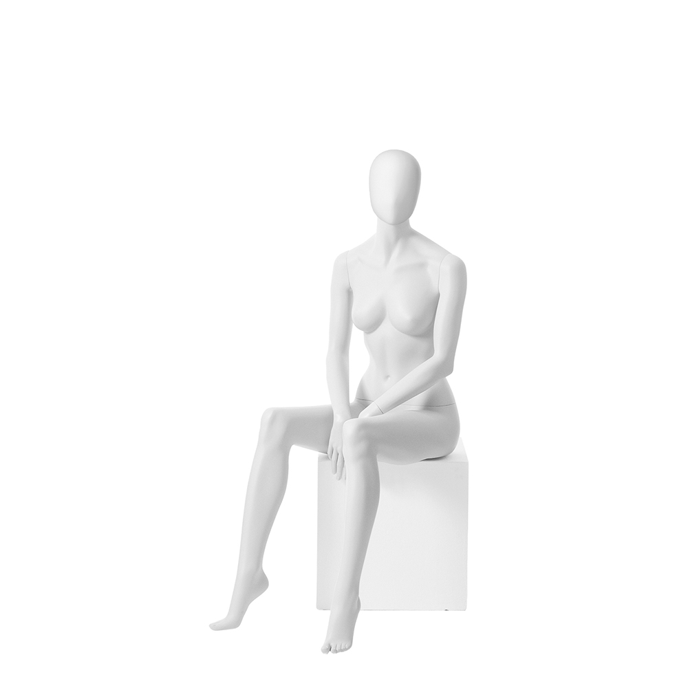 Κούκλα βιτρίνας της σειράς London Babes Abstract Collection σε καθιστή στάση. To κεφάλι είναι αφαιρετικό αυγοειδές (χωρίς καθόλου χαρακτηριστικά προσώπου) και κοιτάει ευθεία, χέρια ανάμεσα στα πόδια και πατούσες στις μύτες. Δάχτυλα χεριών και ποδιών είναι ρεαλιστικά. Είναι κατασκευασμένη από Fiberglass (λεπτές ίνες γυαλιού) ένα υλικό με μεγάλη αντοχή και μικρό βάρος.
