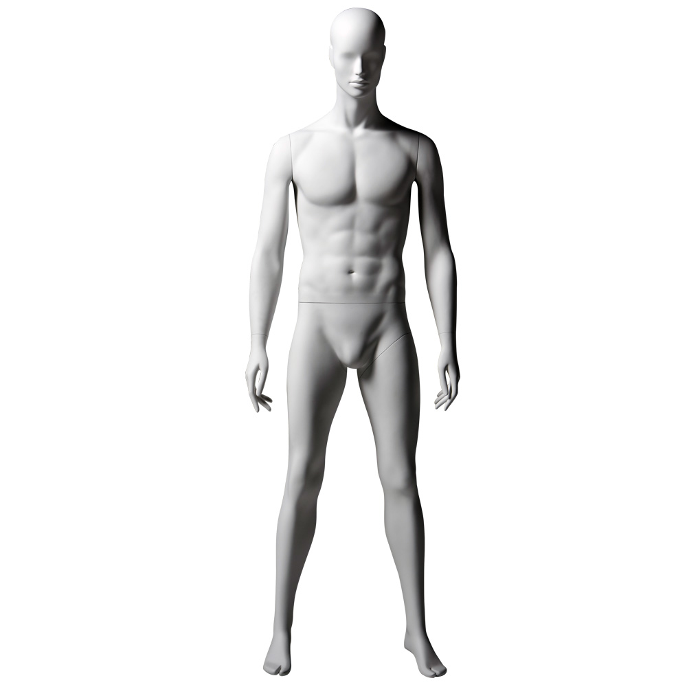 Ανδρική κούκλα βιτρίνας άμορφη της σειράς Futura σε όρθια στάση με τα χέρια κάτω, πόδια σε διάσταση, πατούσες στις μύτες. Το κεφάλι είναι αφαιρετικό - στυλιζαρισμένο (χωρίς πολλά χαρακτηριστικά προσώπου) και κοιτάζει ευθεία. Δάχτυλα χεριών και ποδιών είναι αστυλιζαρισμένα. Είναι κατασκευασμένη από Bioresin (οικολογικό υλικό που προέρχεται από οργανικές πρώτες ύλες).