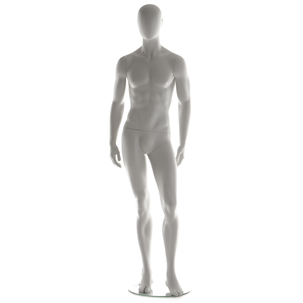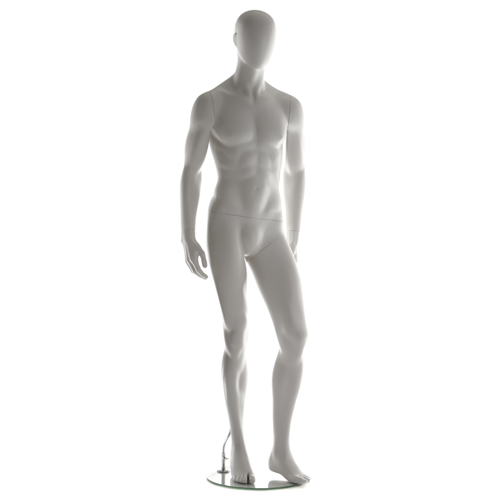 Ανδρική κούκλα βιτρίνας άμορφη της σειράς Stylized Zero σε όρθια στάση, με τα χέρια κάτω, αριστερό πόδι ελαφρώς λυγισμένο και πατούσες στις μύτες. Το κεφάλι είναι αφαιρετικό - αυγοειδές (χωρίς καθόλου χαρακτηριστικά προσώπου) και κοιτάζει ευθεία. Οι λεπτομέρειες στα δάχτυλα χεριών και ποδιών είναι ρεαλιστικές. Είναι κατασκευασμένη από Fiberglass (λεπτές ίνες γυαλιού - ένα υλικό με μεγάλη αντοχή και μικρό βάρος).