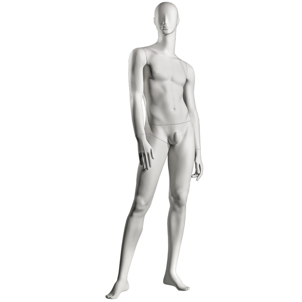 Ανδρική κούκλα βιτρίνας άμορφη της σειράς Ophelia Man σε όρθια στάση. Το κεφάλι είναι αφαιρετικό - στυλιζαρισμένο (χωρίς πολλά χαρακτηριστικά προσώπου) και κοιτάζει δεξιά, τα χέρια κάτω, πόδια σε μικρή διάσταση. Δάχτυλα χεριών και ποδιών είναι στυλιζαρισμένα. Είναι κατασκευασμένη από Fiberglass (λεπτές ίνες γυαλιού) ένα υλικό με μεγάλη αντοχή και μικρό βάρος.