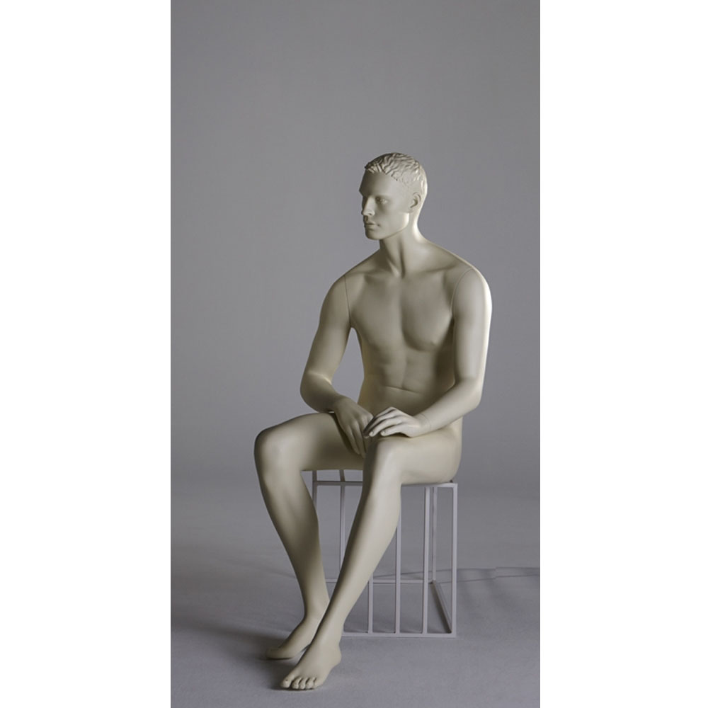 Ανδρική κούκλα βιτρίνας ρεαλιστική της σειράς Ralph σε καθιστή στάση με αριστερό χέρι να ακουμπάει σο αριστερό γόνατο και δεξί χέρι στο δεξιό μηρό. Το κεφάλι είναι ρεαλιστικό (με χαρακτηριστικά προσώπου) και ανάγλυφο μαλλί και κοιτάζει ευθεία. Είναι κατασκευασμένη από Fiberglass (λεπτές ίνες γυαλιού) ένα υλικό με μεγάλη αντοχή και μικρό βάρος.