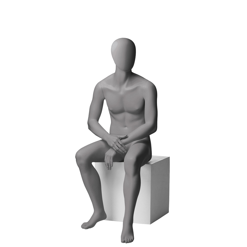 Ανδρική κούκλα βιτρίνας της σειράς Metro Male Collection σε καθιστή στάση, με δεξί χέρι να ακουμπάει στον αριστερό καρπό. Το κεφάλι είναι αφαιρετικό - αυγοειδές (χωρίς καθόλου χαρακτηριστικά προσώπου) και κοιτάζει ελαφρώς αριστερά. Οι λεπτομέρειες στα δάχτυλα χεριών και ποδιών είναι ρεαλιστικές. Είναι κατασκευασμένη από Fiberglass (λεπτές ίνες γυαλιού - ένα υλικό με μεγάλη αντοχή και μικρό βάρος).