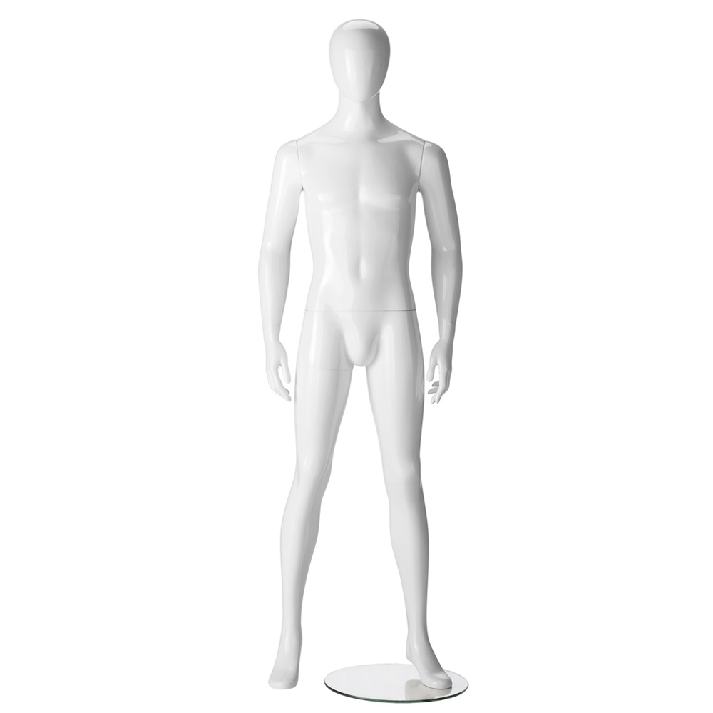 Ανδρική κούκλα βιτρίνας της σειράς Ringo Male Collection σε όρθια στάση, με τα χέρια κάτω και πόδια στο άνοιγμα των γοφών. Το κεφάλι είναι αφαιρετικό - αυγοειδές (χωρίς καθόλου χαρακτηριστικά προσώπου) και κοιτάζει ευθεία. Οι λεπτομέρειες στα δάχτυλα χεριών και ποδιών είναι ρεαλιστικές. Είναι κατασκευασμένη από Fiberglass (λεπτές ίνες γυαλιού - ένα υλικό με μεγάλη αντοχή και μικρό βάρος).