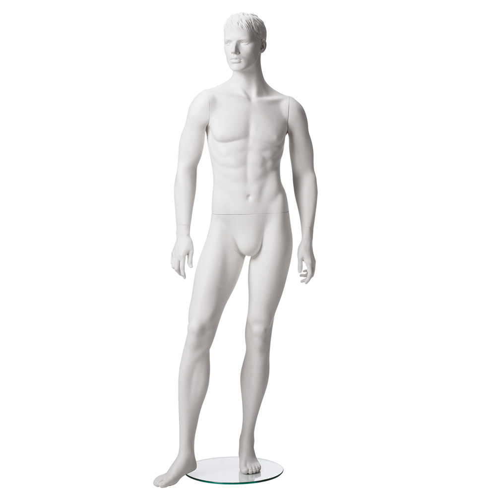 Ακέφαλη ανδρική κούκλα βιτρίνας της σειράς Marvin σε όρθια στάση με τα χέρια κάτω, δεξί πόδι ελαφρώς λυγισμένο. Είναι κατασκευασμένη από Fiberglass (λεπτές ίνες γυαλιού) ένα υλικό με μεγάλη αντοχή και μικρό βάρος.