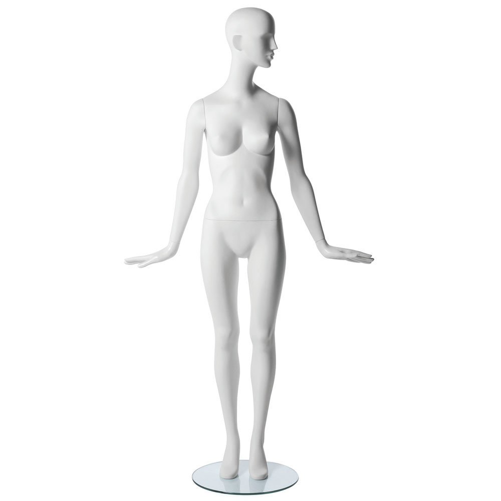 Κούκλα βιτρίνας της σειράς Attitude σε ίσια όρθια στάση, το κεφάλι κοιτάει αριστερά, τα χέρια κάτω με παλάμες στραμμένες προς το έδαφος και πατούσες στις μύτες. Είναι κατασκευασμένη από Fiberglass (λεπτές ίνες γυαλιού) ένα υλικό με μεγάλη αντοχή και μικρό βάρος.